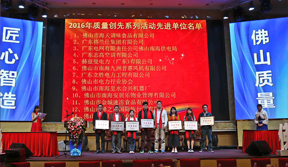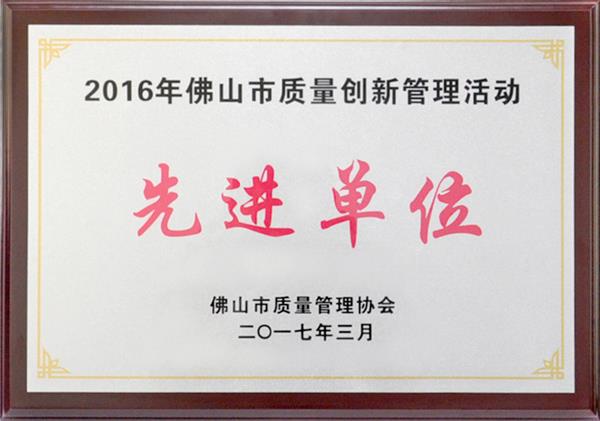 我司被評為“2016年佛山市質量創(chuàng)新管理活動先進單位”